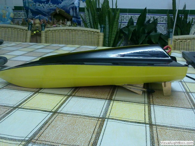 LANCHA TIPO ECO ALEMANA GÜNDERTBOAT DE FIBRA COLOR NEGRO Y AMARILLO DE COMPETICION CON SERVO, EJE NUEVO DE COMPETICION, TIMON DE LATON NUEVO, SISTEMA DE REFRIGERACION PARA MOTORES BRUSLESS, SOPORTE MOTOR RECIEN PUESTO, CON MOTOR DE ESCOBILLAS Y VARIADOR, PONLE PILAS Y DISFRUTALA, 90€.